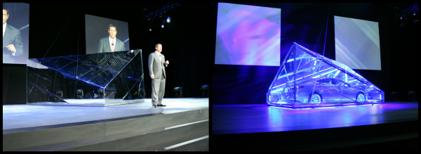 Let there be light: Lexus's Mark Templin gives the hybrid ES300h a hearty (and sparkly) welcome.