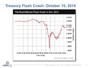 Well, I would point to the October 2014 flash-crash, when all of Wall Street watched in collective horror, as the yield on the benchmark OTR US Treasury 10-year note, plunged significantly, before careering upward again, without provocation. No news. No announcements.