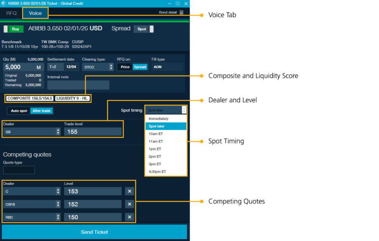 With Voice Processing, the buy-side trader is able to electronically send an order from their Order Management System (OMS) directly to the dealer as soon as the trade is bilaterally agreed upon. Instead of waiting for the salesperson to the spot the trade, confirm the price, and manually enter the trade details, Tradeweb automatically spots / prices and/or hedges the trade for the buy-side and the dealer. All trade details are electronically returned to the OMS and the trade is booked. This reduces manual entry of transaction details and eliminates operational risk, maximizing scalability and trader productivity.