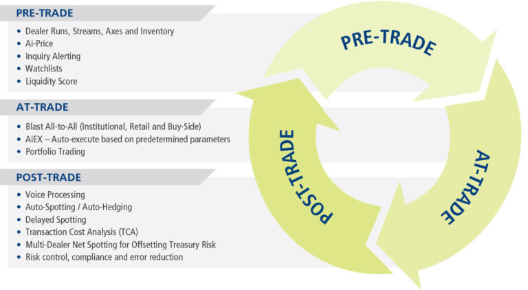 Previously, pre-trade pricing information was scattered in emails, on scraps of paper and over phone calls. Now, that data is electronically organized and parsed through the aggregation of streams, axes, inventory and dealer runs that are directly routed into a client’s Order Management System (OMS).