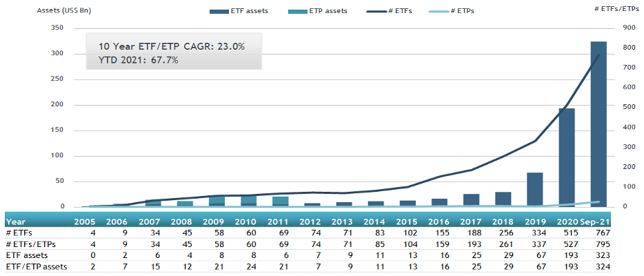 Global ESG ETF and ETP asset growth as at end of September 2021