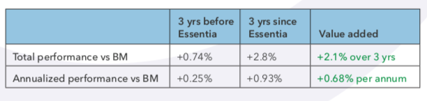 One of Essentia’s case studies involves a global equity fund within a $300bn investment manager who unlocked 68 basis points of behavioural alpha each year.