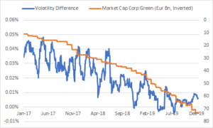 “This shrinking volatility differential means that the barriers to replacing a portfolio of traditional corporate bonds with a portfolio of corporate green bonds have also diminished,” added the study.