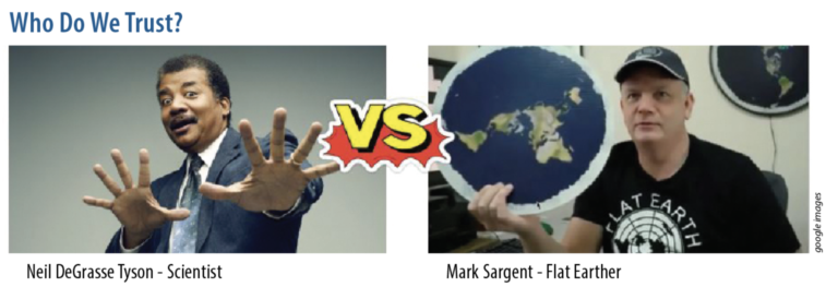 - Who are we programmed to trust? Do the ideas of Neil DeGrasse Tyson, the archetypal scientist, hold more weight than self-proclaimed flat earth activist Mark Sargent? If so, what drives that?