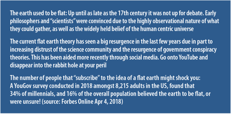 In light of the current wave of disruption we are experiencing, this is the perfect time for us to challenge and rethink our assumptions. Not just in pursuit of change alone, but to be honest and ready to re-pivot our ideas as we craft new ways to move forward as an industry. Can all the buy-side and sell-side Flat Earthers please step forward!