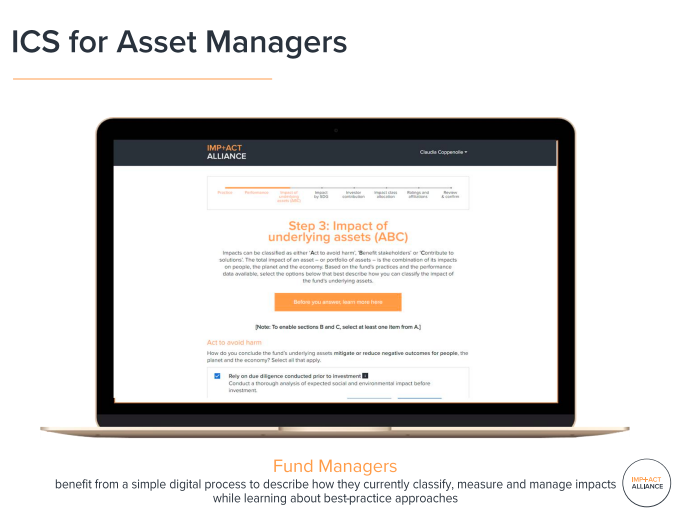 Last month the IMP+ACT Alliance launched ICS (IMP+ACT Classification System), which allows fund managers to easily input how they manage, measure and assess the social and environmental impact of their portfolios.