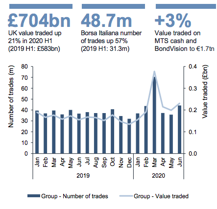 Post-trade revenue rose 9% from the first half of last year to £372m which Schwimmer said was driven by strong growth in LCH, the clearing business. LCH had record activity in credit default swap, foreign exchange and cash equities clearing.