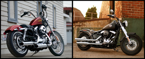 The Harley Davidson Seventy-Two (left) and Softail Slim (right) bring the chopper back for 2012.