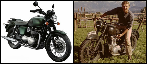 Triumph Bonneville T100: Steve McQueen Edition. That's right: a Steve McQueen edition. Once an avid Triumph rider known for zipping around the outskirts of Los Angeles on a Bonneville, The King of Cool gets a tribute from the British motorcycle manufacturer with this matte-racing green debut. Those who've watched The Great Escape will remember the stunts McQueen did himself, including a maneuver that involved scaling a fence...on a Triumph Bonneville.