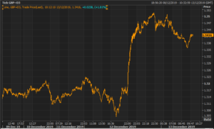 Paul Clarke, head of FX Venues at Refinitiv, said in an email that the move in sterling after 10pm GMT yesterday, after the exit poll predicted the Conservative majority, was the biggest in some time. The rate moved 2.54% from 1.3181 at 22:00 GMT to a high of 1.3516 at 22:45.