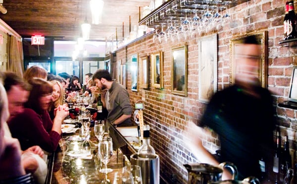 The time of year has come for the kinds of meals that invite the outside--not quite sitting outside, but more like lounging around a table with friends (both old and newly made), sharing stories, pitchers, small plates, and large pans of food. Socarrat Paella Bar, in Chelsea, is one such place, and its warm atmosphere is so convivial, it nearly eclipses the authentic sublimity of its food.