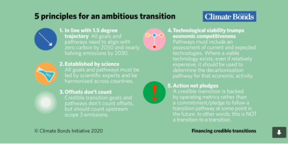 The paper proposes transition pathways for companies that will collectively reduce global emissions and support the rapid growth of a transition bond market by giving confidence to investors, clarity to bankers and credibility for issuers.