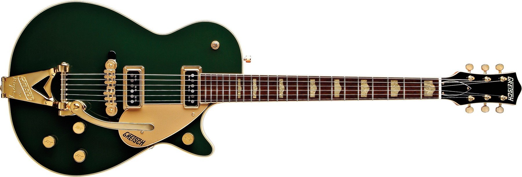 Gretsch 6128 Duo Jet. George Harrison and The Beatles got their start at Liverpool's Cavern Club. Which guitar did George play? A 1957 Gretsch 6128 Duo Jet. The now-legendary modern incarnation is in a gorgeous Cadillac green; the George Harrison tribute model is in black and silver. Gretsch 6128 Duo Jet Semi-Hollow Body Electric Guitar, $3,500. www.gretschguitars.com |