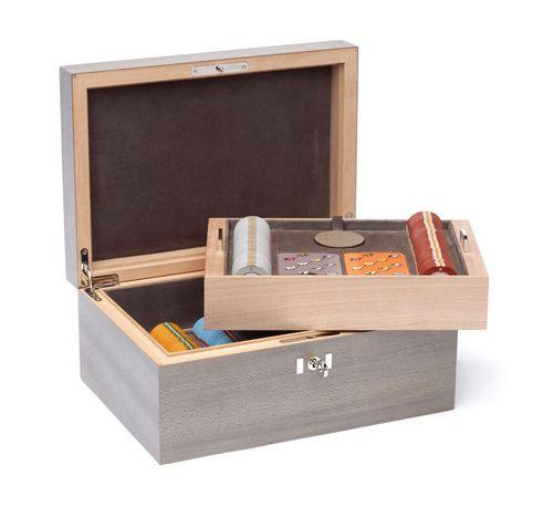 Elie Bleu Flor de Alba Cigar Humidor. Keep those stogies safe and sound in an heirloom-worthy, hand-painted humidor adorned with rare wood veneers and inlays. A playful take on the classic Cuban cigar box, this humidor has an analog hygrometer inside and is made of air-cured sycamore. Elie Bleu Flor de Alba cigar humidor, $2,395.00.www.updowncigar.com |
