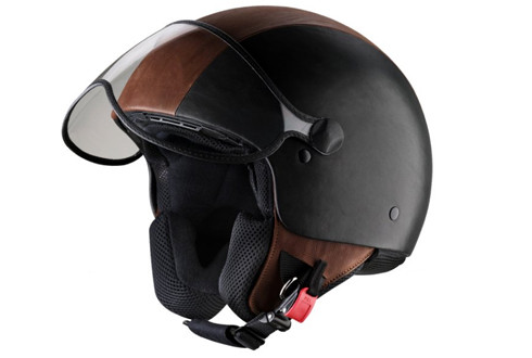 Pineider Two-Tone Leather Helmet. Invoke a bit of vintage style in duo-toned leather. Italian maker Pineider's open-faced, old-school helmet is perfect for quick trips around town. After all, why should your ride get all the cool points? Pineider Black & Brown Leather Helmet, $434.00. www.forzieri.com |
