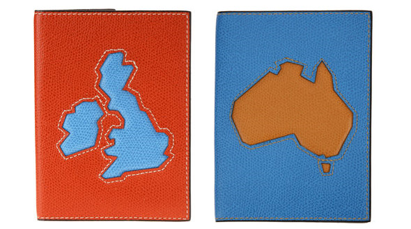 Valextra Cut-Out Passport Cover. Colorful, blocklike geographic leather cutouts add a dash of style to your jetsetting ways. Valextra Leather Passport Holder, with a choice of Italy, Australia, South America, United Kingdom, and Africa cutouts, $295. www.barneys.com |
